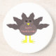 Ce magnifique dessous de verre en grès est orné d'un dessin d'une dinde aux grands yeux noirs, d'un petit bec jaune et de plumes de queue qui collent. Les pieds sont orientés dans des directions opposées, ce qui rend la dinde un air de nid. La dinde a du texte rose sur son ventre qui dit "Bon thanksgiving" et on dirait que les plumes ont été arrachées pour révéler le message.
