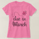 Jolie date d'échéance de maternité faire-part T-shirt de grossesse avec Due En mars slogan. Marche colorée slogan bébé et design papillon.