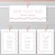 Carte De En-Tête De Table De Mariage De Table De Table De Seating Moderne De Roche Blanche Minimaliste. Tous les textes sont pré-arrangés pour que vous personnalisiez facilement et rapidement avec vos propres détails.