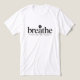 Un T-shirt design et minimaliste "Breathe" avec un design avant apaisant et une scène naturelle simple sur le dos, associé à une citation inspirante. Disponible en noir ou blanc, parfait pour le confort quotidien et la pleine conscience.