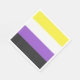 Dieses Design enthält die nichtbinäre Stolperflagge, die Personen repräsentiert, die sich als nichtbinär (auch nichtbinär geschrieben) oder genderqueer identifizieren, wobei es sich um ein Spektrum von Geschlechtsidentitäten handelt, die nicht ausschließlich männlich oder weiblich sind, sondern außerhalb des Geschlechterbinärs liegen. Nichtbinäre Identitäten können unter den transgenderen Schirm fallen, da sich viele nichtbinäre Menschen mit einem Geschlecht identifizieren, das sich von ihrer Biologie unterscheidet. Ein informeller Begriff für nicht binär ist "enby", das aus der Abkürzung NB kommt. Nichtbinäre Menschen können sich identifizieren, dass sie zwei oder mehr Geschlechter haben, kein Geschlecht haben, sich zwischen Geschlechtern bewegen, eine schwankende Geschlechtsidentität haben und drittes oder anderes Geschlecht haben.