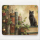 Add cozy magical vibes to anything with this Enchanted Black Cat Library Art design. A sleek black cat perches on a stack of old books, framed by climbing vines, autumn leaves, berries, and softly glowing candles against a warm antique backdrop. The scene feels like a quiet corner of an enchanted library—perfect for witchy, cottagecore, and book-lover aesthetics.