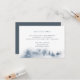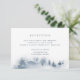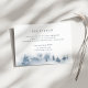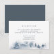 Conçue pour aller avec notre collection de mariage Snowbound, cette élégante carte d'accompagnement de réception hivernale présente une scène de forêt enneigée avec des arbres à feuilles persistantes peints à l'aquarelle dans des tons bleus et gris. Personnalisez-la avec les détails de votre réception de mariage, y compris l'heure, le lieu et l'adresse, en lettrage gris-bleu classique.
