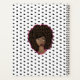 Ce design est composé de "Queen, phénoménal, beau, intelligent, magique, patron, aimant, indépendant, drôle, créatif et fort" niché dans son afro, avec des colliers multicolores superposés sur un arrière - plan de pois rectangle.