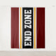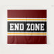 Dieses sportliche, sportliche Design zeichnet sich durch einen fett gedruckten Text in der ENDE-ZONE in einem schwarzen Streifen aus, der deutlich hervorgehoben ist und mit zwei weißen und gelben Rennstreifen gegen tiefe rote Außenstreifen gekennzeichnet ist. Der Text in diesem Design kann personalisiert sein.