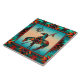 Brighten Sie Ihre Zuhause mit diesem einzigartigen "Eine von einer Art" Ende der Trail Keramik Tile! Es verfügt über ein indisches Ende des Trails indische und Pferde und Sonne auf einem türkisfarbenen und orangefarbenen Sonnenuntergang...umgeben von einer Südwestgrenze in Türkis, Orange & Schwarz!