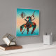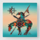 Dies ist ein einzigartiges indisches Ende der Trailmauer-Uhr! Es verfügt über einen nativen Amerikanische Ureinwohner auf einem Pferd und Sonne auf einem türkisfarbenen und orangen Sonnenuntergang! Original Art Design von Künstler Kerry Miller.