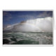 Niagara Falls (Cayuga: Gahnawehtaˀ oder Tgahnawęhtaˀ[1]) ist der gemeinsame Name für drei Wasserfälle, die die internationale Grenze zwischen der kanadischen Provinz Ontario und dem US-Staat von New York überqueren. Sie bilden das südliche Ende der Niagara-Schlucht. Die drei Wasserfälle sind von der größten bis zur kleinsten, die Horseshoe Falls, die American Falls und die Bridal Veil Falls. Die Horseshoe Falls liegen auf kanadischer Seite und die American Falls auf amerikanischer Seite, getrennt von Goat Island. Die kleineren Bridal Veil Falls befinden sich ebenfalls auf der amerikanischen Seite, von den anderen Wasserfällen durch die Insel Luna getrennt. Die internationale Grenzlinie wurde ursprünglich 1819 durch den Horseshoe Falls gezeichnet, aber die Grenze ist seit langem wegen natürlicher Erosion und Bauweise umstritten.[2] Am Niagara River gelegen, der den Erie-See in den Ontariosee abfließt, bilden die kombinierten Wasserfälle den höchsten Wasserfall der Welt, mit einem senkrechten Abfall von mehr als 50 m. Der Horseshoe Falls ist der mächtigste Wasserfall Nordamerikas, gemessen an der vertikalen Höhe und auch an der Durchflussrate [3]. Die Wasserfälle liegen 27 km nordwestlich von Buffalo, New York und 121 km südöstlich von Toronto, zwischen den beiden Städten Niagara Falls, Ontario und Niagara Falls, New York. Die Niagarafälle bildeten sich, als die Gletscher am Ende der Wisconsin-Gletscherzeit (der letzten Eiszeit) zurückgingen, und Wasser aus den neu gebildeten Großen Seen schnitzte einen Weg durch die Niagara-Ausrüstung auf dem Weg zum Atlantischen Ozean. Die Niagarafälle sind zwar nicht besonders hoch, aber sehr breit. Mehr als 6 Millionen Kubikfuß (168.000 m3) Wasser fällt jede Minute in hoher Strömung über die Wappen-Linie [4] und im Durchschnitt fast 4 Millionen Kubikfuß (110.000 m3). Die Niagarafälle sind sowohl für ihre Schönheit als auch für ihre Wasserkraft bekannt. Die Wasserfälle sind eine Quelle für Power. Das Gleichgewicht zwischen Freizeit, kommerzieller und industrieller Nutzung zu steuern, ist seit dem 19. Jahrhundert eine Herausforderung für die Verwalter des Sturzes.