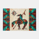 Dies ist ein einzigartiges "One of a Art" Ende der Wandertür! Es verfügt über ein südwestliches Indianerende Ende des Trails indisch und Pferd unter der Sonne auf einem Sandsteinhintergrund...umgeben von einer Grenze in Türkis, Orange & Schwarz! Original Art Design von Künstler Kerry Miller.
