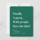 Schließlich ein Party Simple Text Emerald Green Save the Date Minimalistisch. Ein modernes, einfaches Design unterstreicht diese farblich bearbeitbare Typografie! Schließlich. Ein Party. Mit Menschen. Save The Date! Mit einer hübschen Marmorstruktur auf der Rückseite, kann aber durch Ihr eigenes Foto ersetzt werden. ~ Karo mein Shop zu sehen, die gesamte Hochzeitssuite für dieses Design!