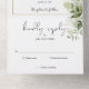 Alles in einer vertagten Hochzeitseinladung mit botanischen grünen rustikalen Blätter, die über einen goldenen Bogen fallen, der elegante Typografie umschließt. Die Einladung enthält eine perforierte RSVP-Karte, die für Sie individuell adressiert oder links als leere Karte für die Handschrift der Adressdaten Ihres Gastes verwendet werden kann. Entwickelt von Thisisnotme©