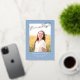 Diese stilvolle Abschluss-Ankündigung und Einladung enthält ein Single-Foto mit dem Wort schließlich in Goldfolie darüber auf einem staubblauen Hintergrund. Die Rückseite der Karte kann für eine Einladung oder eine persönliche Nachricht verwendet werden.