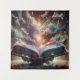 Stellen Sie sich ein riesiges, unheimliches Buch mit Seiten vor, die sich unendlich in den Himmel ausbreiten. Das Buchcover ist ein riesiges, schimmerndes Mosaik, das Farben und Muster verschiebt. Wenn man die Seiten umdreht, verwandeln sie sich in einen kaskadierenden Wasserfall glühender, flüssiger Wörter, die flüchtige, surreale Kreaturen und Landschaften bilden. Über dem Buch schweben kolossale, durchsichtige Tintenklemme, die unmögliche Symbole in der Luft kritzeln. Rund um das Buch greifen riesige, entkratzte Hände auf die Seiten, ihre Bewegungen schaffen Wellen in einem schwebenden Meer von fragmentiertem, leuchtendem Text. Diese Szene vermischt die Großartigkeit des übergroßen Buches mit surrealen, dynamischen Details, um eine andere, bezaubernde Atmosphäre zu schaffen.