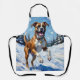 Energetic Boxer Dog Leaping in Winter Snow Fun Schürze