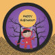 Des autocollants noirs et violets avec un enfant asiatique portant un costume de diable pour aller faire un tour ou traiter. Le texte est modifiable. © ArianeC Illustrations-Tous droits réservés