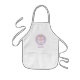 Le tablier de l'enfant avec un sourire, petit gâteau de licorne-style. Le petit gâteau a des oreilles de licorne et un klaxon d'or (de non-aluminium). Le tablier a également un nom personnalisable.