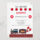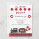 Train pour enfants Invitation de fête d'anniversaire. Rouge, blanc et noir. Fond blanc.