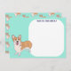 Les enfants peuvent envoyer leur propre message de remerciement avec ces cartes de remerciement pour chien corgi. Utilisez le champ à compléter pour personnaliser facilement le texte en haut des cartes. Il y a de la place pour que les enfants écrivent leur propre message, fassent un dessin ou dictent leur message de remerciement à Maman ou Papa. Ces cartes présentent une illustration mignonne d'un chien Pembroke Welsh Corgi sur un fond vert menthe. Le dos de ces cartes à panneau plat a un motif Corgi assorti.