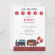 Train pour enfants Invitation de fête d'anniversaire. Rouge, blanc et noir.
