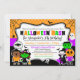 Profitez de cette invitation à l'anniversaire d'Halloween pour enfants spottacular, parfait pour les fêtes costumées, anniversaires, et autres paniers d'Halloween! Cette invitation présente des enfants en costumes, fantômes, chauves-souris et crânes variés.