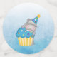Joli hippo avec cupcake bleu et casquette de fête bleu et jaune. confettis cool à saupoudrer autour du gâteau ou sur toute la table pour correspondre au thème de votre anniversaire hippo.