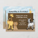 Cute invitation d'anniversaire des animaux de la Jungle, parfaite pour un premier anniversaire ou pour n'importe quelle année ! Ajoutez votre texte personnalisé en ligne. Girafe, lion, zèbre, oiseau et éléphant sur le dos. Idéal pour une fête pour enfants ou une fête ! Images clipart d'animaux par www.digiwebstudio.com