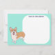 Les enfants peuvent envoyer leur propre message de remerciement avec ces cartes de remerciement avec un chien corgi. Utilisez le champ à compléter pour personnaliser facilement le texte en haut des cartes. Il y a un espace pour que les enfants écrivent leur propre message, fassent un dessin ou dictent leur message de remerciement à Maman ou Papa. Ces cartes présentent une illustration mignonne d'un chien Pembroke Welsh Corgi sur un fond vert menthe. Le verso de ces cartes à panneau plat présente un motif Corgi assorti.