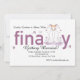 Un faire-part de mariage d'amusement pour un couple du même sexe. Il comporte deux jeunes mariées étreignant et embrassant entouré par de petits coeurs. Le mot "finalement se compose de deux jeunes mariées au lieu "d'un l à deux lettres".