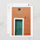 Unsere Postkarte zeigt ein Foto der Haustür eines kleinen Hauses in Culross, Fife, Schottland. Die Wände sind orange gestrichen und die Tür grün. Die Tafel an der Wand stammt aus dem Gebäude des Hauses aus dem Jahre 1676. Wir haben Raphaels berühmtes Engelgemälde in das winzige Fenster eingefügt.