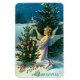 Ein schöner Vintager, flexibler Weihnachtsmagnet mit einem Engel, der einen Weihnachtsbaum schmückt.
