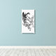 Vintager zeichn eines Engels, der Harfe spielt. schöne Schwarz-Weiß-Abbildung eines Knetens auf einem grünen Boden und Spielen eines gestreiften Musikinstruments.