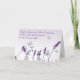 Diese Beileid-Karte hat ein wunderschönes Bild von violetten Blumen & grauen Schmetterlingen, und ein Zitat einer unbekannten Person, um diejenigen zu trösten, die einen geliebten Menschen verloren haben (Person oder Haustier): Engel sind immer in der Nähe derer, die trauern ... um ihnen zu flüstern, dass ihre Lieben in den Händen Gottes sicher sind.