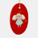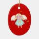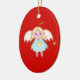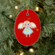 Ein niedlicher kleiner Feiertagsengel auf einem hellen roten Hintergrund ist sicher, Ihre Tage festlich zu machen.