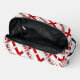 Personalisierter Dopp-Kit oder Toilettenbeutel mit der rot-weißen englischen oder St. George Cross-Flagge mit dem Wort ENGLAND, unten im Stil der Flagge. Design ist gefliest für beste Ästhetik. Ein weißes Fraktal von quadratischen Quadraten bietet einen Platz für einen Namen, in roten Buchstaben, für eine personalisierte Touch oder Geschenk. Ideal für eine Mutter oder einen Papa mit englischem Erbe, die reist, besonders als Geschenk am Muttertag oder Vatertag. Vergnügen Sie sich auf Ausflügen zu Wiedersehen, Vereinen oder Reisegruppen.