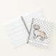 Desteis originelle Cartoon Illustration eines niedlichen Golden Retriever Zuchthundes in englischer Creme. Unter dem Hund befindet sich ein personalisierbarer Textbereich für den Titel des Notebooks. Der Hintergrund weist ein Muster grauer Hundepfoten auf.