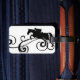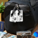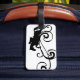 Das Bild zeigt ein Jäger-Jumper-Pferd und ein Reiter, der über hübschen wirbelfarbene Flecken in Schwarz-Weiß springt. Ein großartiges Geschenk für Pferdeliebhaber jeden Alters!
