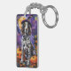 Englische Setter Hund Halloween Hexe und Kürbis Schlüsselanhänger