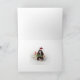 Vier englischer SpringerSpanielwelpen, die in den Weihnachtsmannmützen und im roten Feiertagsschal gegen frisch gefallenen Schnee gekleidet werden, ist eine attraktive Weihnachtskarte für jedermann, das Lieben die englischer Springerspaniel-Jagdhundezucht.