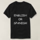 Feiern Sie die Zweisprachigkeit mit diesem einzigartigen "Englisch oder Spanisch" T - Shirt! Ideal für Sprachfreunde, Reisende und alle, die die Schönheit der Kommunikation in mehreren Sprachen Lieben. Dieses Shirt ist eine lustige und stilvolle Art, Ihre Fähigkeit zu zeigen, sowohl Englisch als auch Spanisch mit Leichtigkeit zu navigieren. Egal, ob Sie lehren, lernen oder einfach nur stolz auf Ihre zweisprachigen Fähigkeiten sein, dieses Design ist ein Gesprächsstarter. Er ist aus hochwertigem Stoff gefertigt und bietet Komfort und Langlebigkeit. Tragen Sie Ihre sprachliche Vielseitigkeit mit Stolz!