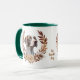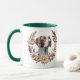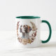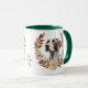 Ein hübscher Herbstkranz in den Farben Zimtbraun, Bräune und Creme umgeben das Aquarellbild eines schönen englischen Pointer Hundes. Das Bild wird zweimal auf der Tasse gedruckt, wobei der eigene Text dazwischen liegt.