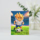 A friendly fish‑and‑chips character wearing an English soccer jersey stands confidently on a bright stadium field. The illustration uses clean vector‑like lines, expressive eyes, and soft 3D shading. Detailed grass and stadium lighting create a lively soccer mood.