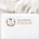 Die links Seite dieser Rücksendeadressen-Aufkleber zeigt einen Blume-Kranz in den Farben Weich Rosa, Blau, Gold, Grün und Creme. In der Mitte befindet sich ein Aquarellbild eines schwarz-weißen englischen Pointer Hundes. Die winzigen goldenen Konfetti geben dem Hintergrund ein subtiles Funkeln. Ihr eigener Text ist rechts in blau und braun Gold.