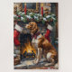 Bring graceful, feathered charm to your holiday season with this classic English Setter Christmas design! This unique scene features an elegant, beautiful English Setter poised near a rustic fieldstone fireplace mantle, intently inspecting a personalized Christmas stocking hanging nearby. The mantle is traditionally decorated with thick, snowy pine boughs, classic red candles, and antique carved wooden angels. The dog wears a sophisticated tartan bow tied neatly at its neck. The setting is a cozy, traditional English country home on Christmas morning, with frost lightly coating the windowpanes, creating a warm, nostalgic holiday atmosphere. This design is a perfect Christmas gift for any English Setter owner, dog lover, or admirer of festive and refined sporting dog art.