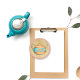 Ein wunderschön illustrierter, Vintager, Kupferkessel mit Aquamarinseiten und einem kleinen Blumenmuster in der Mitte. Single-Reihe von rosa und aqua Punkte unter dem Deckel gerade über der Seitenkonstruktion, und ein umliegender rosa pastellfarbener Rahmen rund um das gesamte Design.
