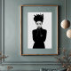 Die atemberaubende Schwarz-Weiß-Kunstdrucke, ein faszinierendes Meisterwerk avantgardistischer Mode und künstlerischen Ausdrucks. Dieses auffallende frontale Porträt zeigt eine Frau von rätselhafter Schönheit, geschmückt mit einem außergewöhnlichen, skulpturalen schwarzen Kopfstück, das Wirbel in abstrakten, Bio Formen um ihren Kopf. Ihre porzellanähnliche Haut, ihre schwarzen Lippen und die durchdringenden Augen mit dramatischen Flügeldrachen bilden einen faszinierenden Kontrast zu ihrem schlichten schwarzen Rollkragen und ihren langen, eleganten Handschuhen, hervorgehoben durch ein gewagtes Metallarmband. Dieses Kunstwerk, das in kräftigem Kontrast-Monochrom vor einem unberührten weißen Hintergrund dargestellt wird, betont Form, Textur und den intensiven Blick auf das Thema. Dieses Bild eignet sich perfekt für moderne Wohnräume, Modestudios oder jede Dekoration, die eine Touch von anspruchsvollem Drama, einzigartiger Eleganz und hoher Modeattraktion sucht. Es ist eine ideale Wahl für Kunstsammler und Liebhaber von kühnem, ikonischem Stil.