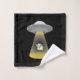 Vecteur d'enlèvement alien de vache amusant illustration clipart icône, couleur arrière - plan personnalisable et texte.