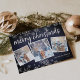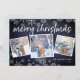 Moderne et festif, le carte photo des Fêtes présente trois photos carrés dans une mise en page de collage sur un arrière - plan bleu nuit, avec une bordure supérieure et inférieure de flocons de neige tombants et "Joyeux Noël" sur le dessus en typographie esquissée à la main. Personnalisez avec vos noms et l'année en bas à droite.