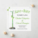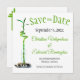 Envoyer ce carré "Save The Date" faire-part mariage date avec une tige de bambou chanceux en spirale sur le devant avec les détails du texte. Le coin supérieur gauche est entrelacé de deux tiges de bambou et de feuilles dans le coin inférieur droit. Personnalisez le texte dans les champs modèle ou cliquez sur personnaliser pour sélectionner le style, la taille et la couleur de la police que vous préférez.