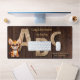 Un tapis de bureau au design rustique orné de lettres A et C en bois sur un arrière - plan en bois. Le chaton est optionnel, mais bien sûr, il conviendra à tout amoureux des chats ! Un beau tapis de bureau pour un professeur.