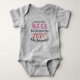La conception de la combinaison de bébé adorable est entièrement personnalisable, ce qui vous donne la possibilité de laisser la formulation telle quelle ou de la remplacer par un message plus personnel. L'exemple de message indique : « Je sais que je suis un BAZAR, mais vous savez que vous m'AIMEZ quand même ! » Si vous choisissez de modifier le libellé, gardez à l'esprit que les polices resteront les mêmes.